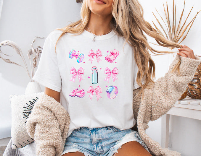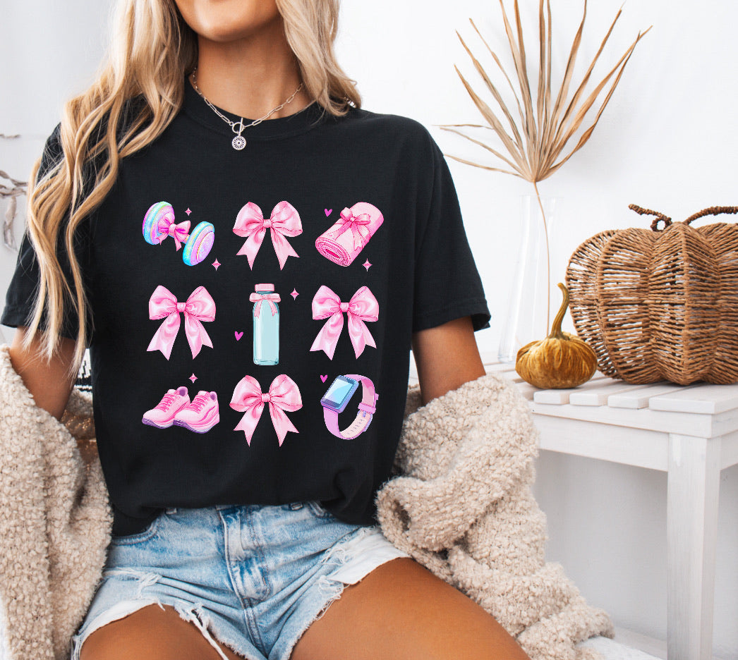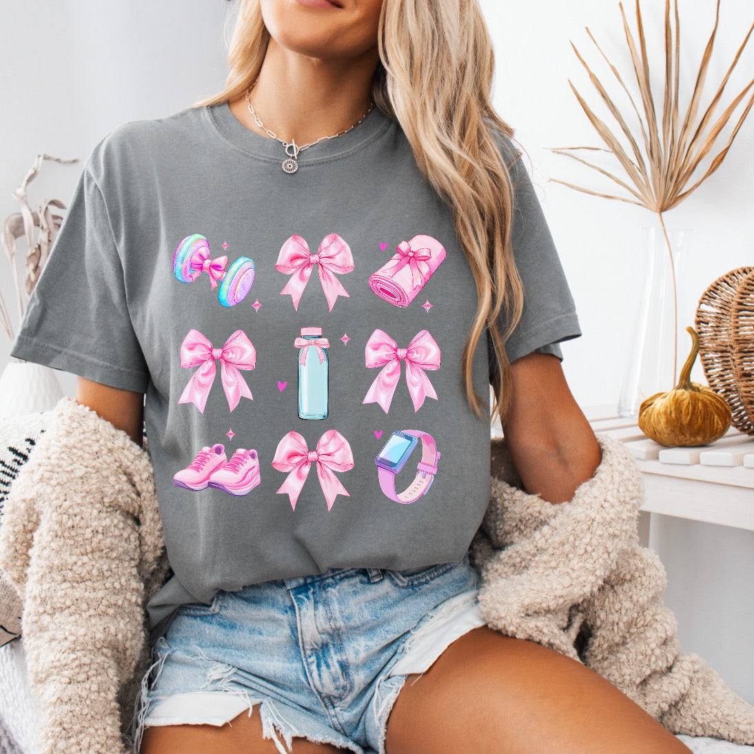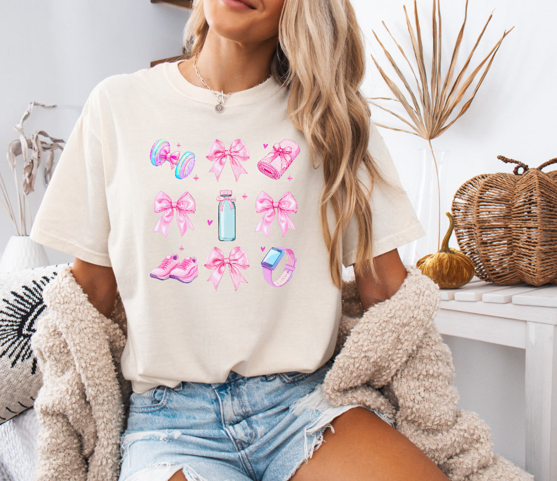 Add a touch of sparkle to your workout wardrobe with our Glitter Coquette Pink Workout Shirt! Crafted from soft, breathable Comfort Colors fabric, this shirt combines comfort with a fun, flirty vibe. The glittery pink design gives it a playful and feminine touch, making it the perfect choice for those who want to shine while they sweat.